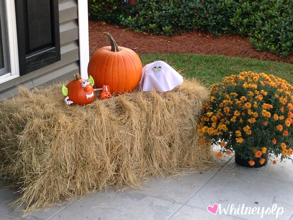 We used the Mr. Potato Head parts to make ghost and goblin pumpkins for Halle Jane!