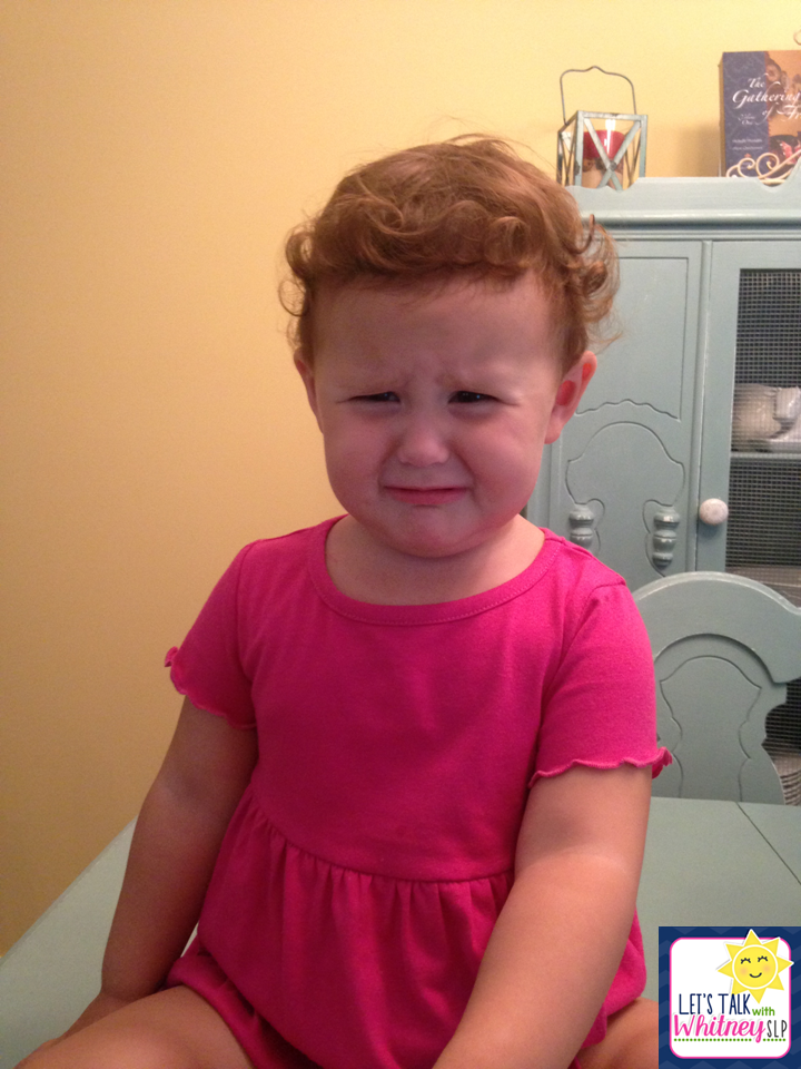 Having the students practice making different facial expressions in front of the class or in front of a mirror is also a great way to learn facial expressions, feelings, and how to read body language and facial expressions to know how someone is feeling. We practiced with me giving them a feeling to show, and then we practiced guessing how they feel by their facial expressions. Below are pictures of my little one, Halle Jane, doing the same thing!
