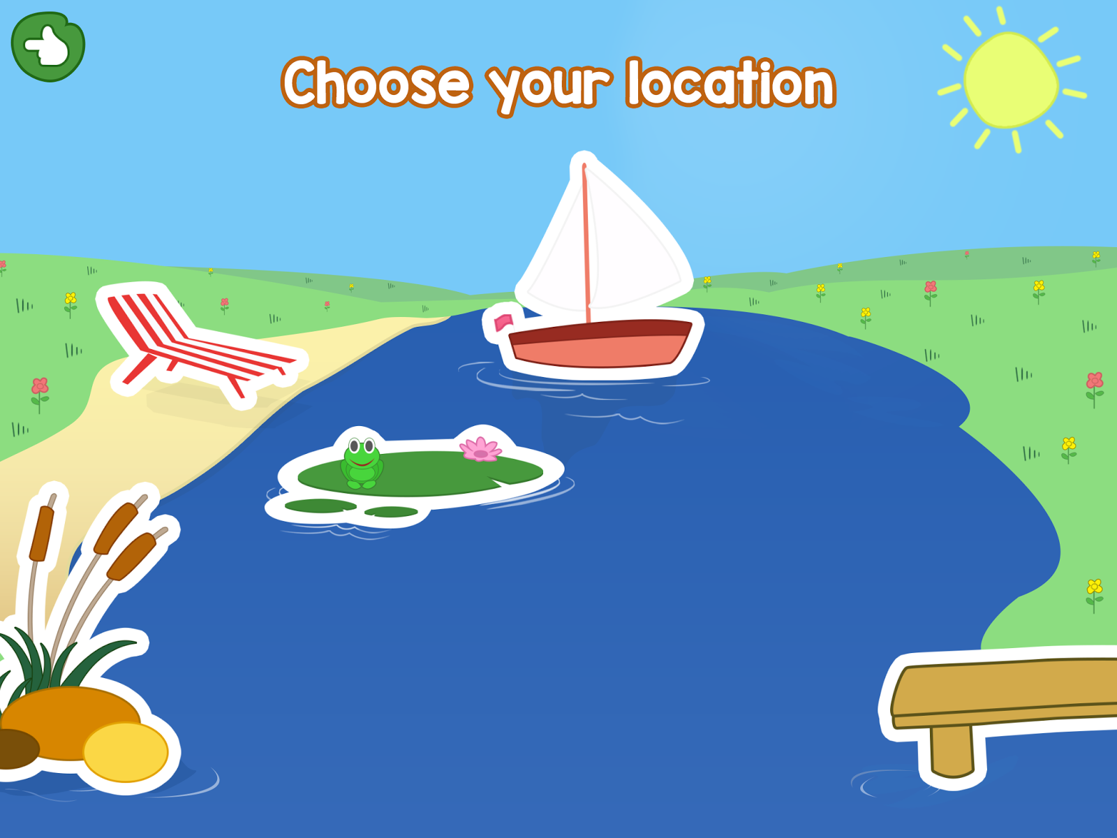You can alter settings, such as choosing the location where the character, Dubdub, fishes from, choosing the difficulty level (easy, medium, hard), and choosing how many words are given (3 or 6), as seen in the screenshots below. If you click on “Display,” you can also choose whether only a picture is displayed, only a word, or a word and a picture.
