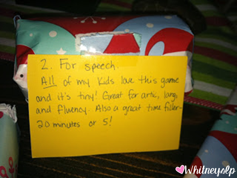 I can’t begin to tell you how awesome it has been to get to know and collaborate with SLPs all over the globe this past year. I have met some amazing people, and talking with them has made me a much better therapist than ever before. Some of us decided to get together and do a SLP Blogger Secret Santa Gift Exchange this year.