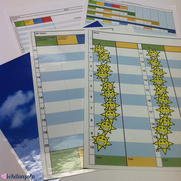 Each flip book set comes with a spiral bound flip book (that stands up!), 2 sheets of reusable stickers, reusable data sheets for both younger and older students, a blank sky page for the stickers, 10 SLP data conversion sheets, and 5 SLP data sheets. An adorable Sunny Speech bag is also included, which is perfect if you travel!