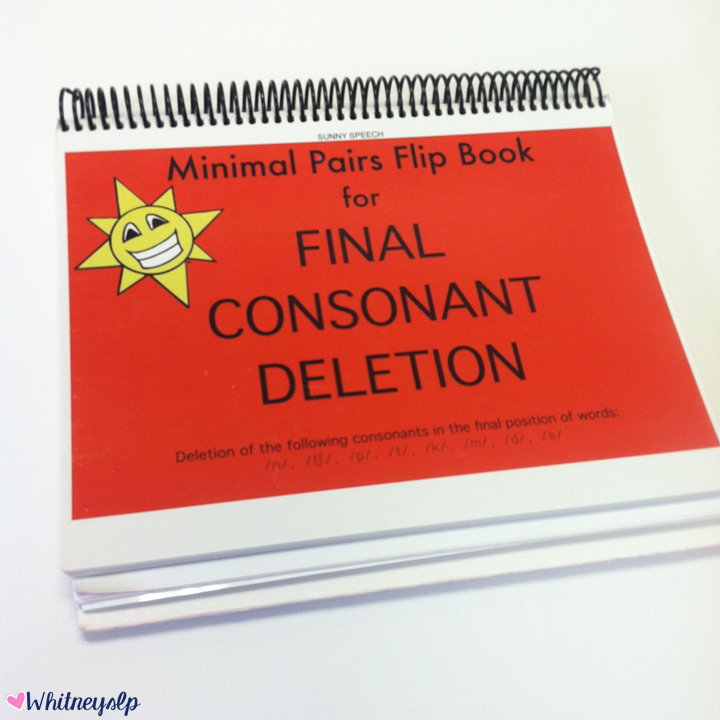 I’m back today with a product review for a neat way to practice those dreaded final consonants! Sunny Speech Games were created by Annika Suarez, an SLP in sunny Florida. The flip-book games were created to target phonological processes such as final consonant deletion, fronting and backing, as well as stopping, voicing/devoicing, gliding, and cluster reduction, and they use a minimal pairs therapy technique.