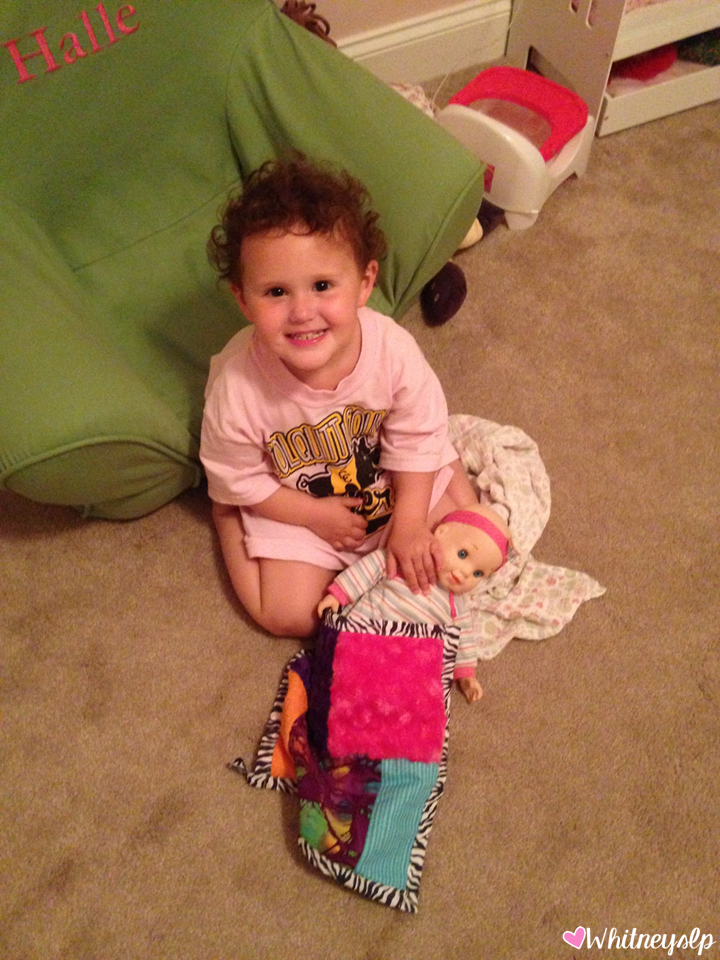 To make long stories short, we have worked/are working through walking in bare feet (still wants to wear shoes to bed). We’re working through eating food with her fingers-especially sticky food like donuts, pancakes, and peanut butter and jelly sandwiches (still needs to see a wet napkin nearby) Getting water in her eyes (still needs a cue to “use her windshield wipers”) has been a HUGE struggle. We’ve a;so worked through wearing tags (still asks to have them cut out, which we rarely do), playing with playdough (still hates when it gets under her fingernails), loud noises (the vacuum, toilets, thunder), and a few more. Currently, we’re dealing with her not wanting to ever go without pants! She doesn’t want to wear a gown to bed or a dress unless she has on shorts/pants/bloomers underneath. It seems like whenever we work through one hang-up, another one comes along.